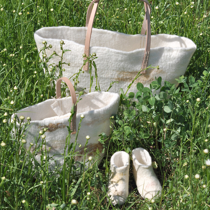 羊毛や獣毛を使って フェルトの生地を作りました