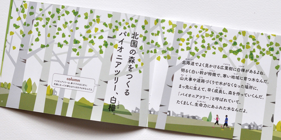 ゆたかな森、ゆたかな暮らしのヒントが、ここ北国の身近な白樺にあるのかもしれないと思い、未来を生きる北海道の子供たちに読んでもらいたくて、この絵本を作りました。